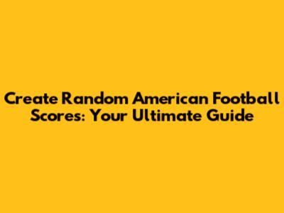 Create Random American Football Scores: Your Ultimate Guide