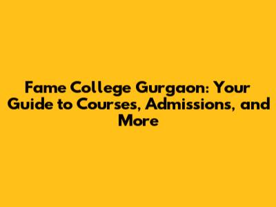 Fame College Gurgaon: Courses, Admissions, And More