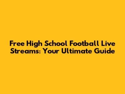 Free High School Football Live Streams: Your Ultimate Guide