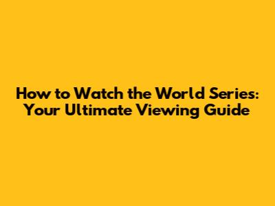 How To Watch The World Series: Your Ultimate Viewing Guide