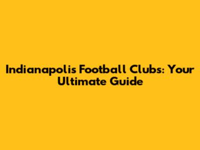 Indianapolis Football Clubs: Your Ultimate Guide
