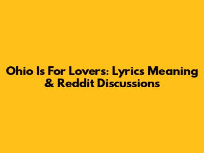 Ohio Is For Lovers: Lyrics Meaning & Reddit Discussions