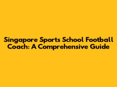 Singapore Sports School Football Coach: A Comprehensive Guide