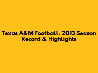 Texas A&M Football: 2013 Season Record & Highlights