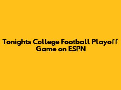 Hey sports fanatics! Are you ready for some epic college football action? Tonight, we've got a College Football Playoff game lined up on ESPN that you absolutely cannot miss. It's the kind of game that'll have you glued to your couch, yelling at the TV, and probably questioning every coaching decision. But hey, that's the beauty of college football, right? So, let's dive into everything you need to know about tonight's game. We'll cover the teams playing, the time, the channel, and maybe even some wild predictions. Get your snacks ready, gather your friends, and prepare for an evening of gridiron glory! College football playoff games are always something special, offering a unique blend of tradition, passion, and high-stakes competition. This year's playoff is especially exciting, with several teams vying for a chance at the national championship. ESPN is your go-to source for all the action, providing in-depth coverage, expert analysis, and real-time updates. The network's commitment to college football is unmatched, making it the perfect place to watch tonight's crucial matchup. The atmosphere surrounding the College Football Playoff is electric. Fans from all over the country gather to support their teams. The energy is contagious, and it's a shared experience that unites college football enthusiasts. The players themselves understand the significance of these games, and you can expect nothing less than their best efforts on the field. Coaches, too, will be making their critical adjustments to ensure their teams have the best chance to progress. The anticipation builds throughout the week, as fans debate potential scenarios and strategies. Social media platforms explode with speculation, creating a constant buzz of excitement. And as the kickoff time approaches, you can feel the collective heartbeat of the college football community quickening with anticipation. Remember, tonight's game isn't just about the teams; it's about the legacy they hope to forge, the fans they hope to delight, and the memorable moments they hope to create. So, gear up, because tonight promises to be an unforgettable night of college football.