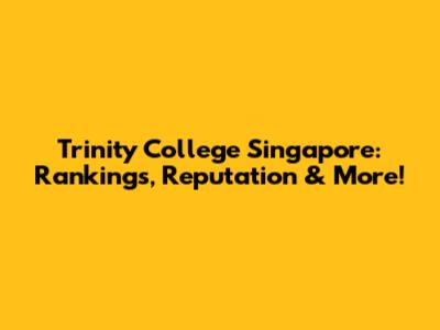 Trinity College Singapore: Rankings, Reputation & More!